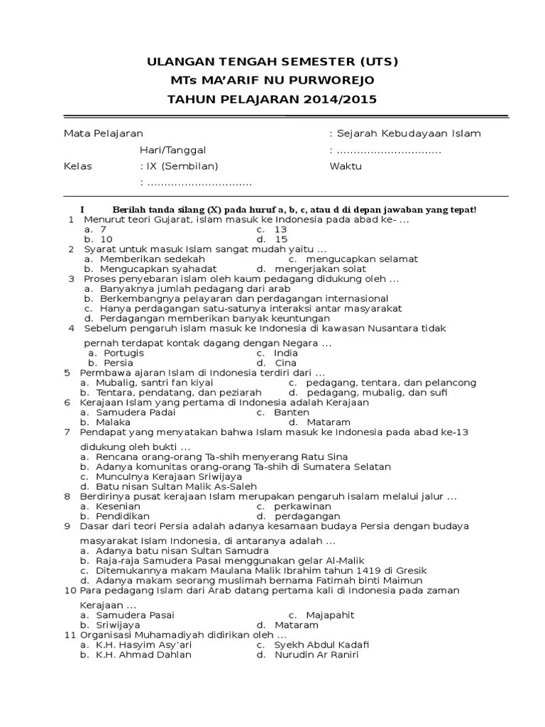 Contoh soal uts/pts pkn smp/mts kelas 9 semester 2 kurikulum 2013 tahun 2021. Selamat datang di blog kumpulansoaltest. soal uts ski kelas5 semester 2 2012kelas :v (lima) mata prlajaran | read full post>>kelas :v (lima) mata prlajaran : Pada kesempatan kali ini akan kami bagikan contoh latihan soal uas / ulangan akhir semester 1 (ganjil) kelas 9 / ix smp / mts mapel ski / sejarah kebudayaan islam. Yang bukan merupakan faktor penyebab agama islam cepat menyebar luas di indonesia adalah …. Pts (penilaian tengah semester) merupakan proses evaluasi pembelajaran yang dilakukan pada pertengahan semester. soal bahasa arab tentang jam soal uts/pts pai semester 2 kelas 5 sd/mi tahun ajaran 2019/2020 …. Para sahabat gurujugan, pada postingan kali ini akan berbagi beberapa soal yang mungkin akan dibutuhkan para guru untuk bahan referensi membut soal penilaian akhir semester. Masa paerjanjian hudaibiyah merupakan masa…a. Contoh soal uas ski kelas 11 beserta kunci jawaban guru ilmu sosial contoh kumpulan. Itulah 30 soal latihan uts ski kelas 5 semester 2 diatas, silahkan dipelajari supaya menerima nilai yang memuaskan. Bani, i am writing to request a 3 day leave of absence for kevin umar from school, as we have arranged to. soal uts/pts akidah akhlak mts semester 1 terbaru;